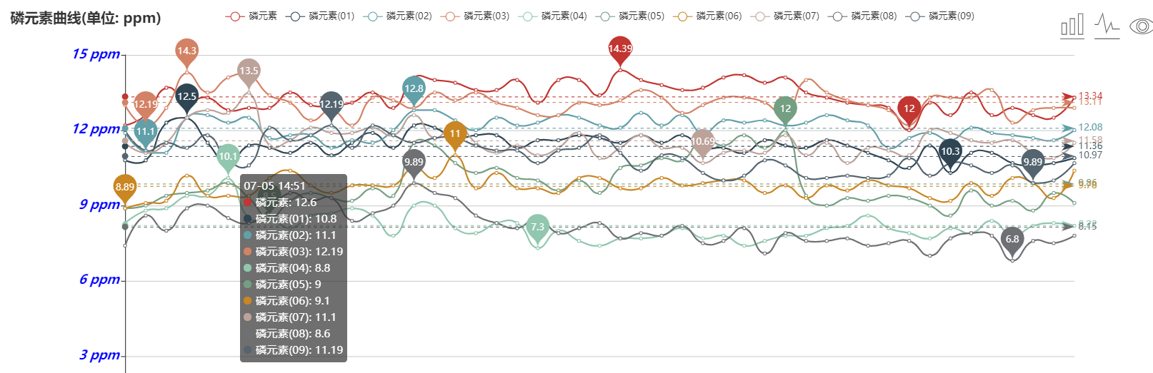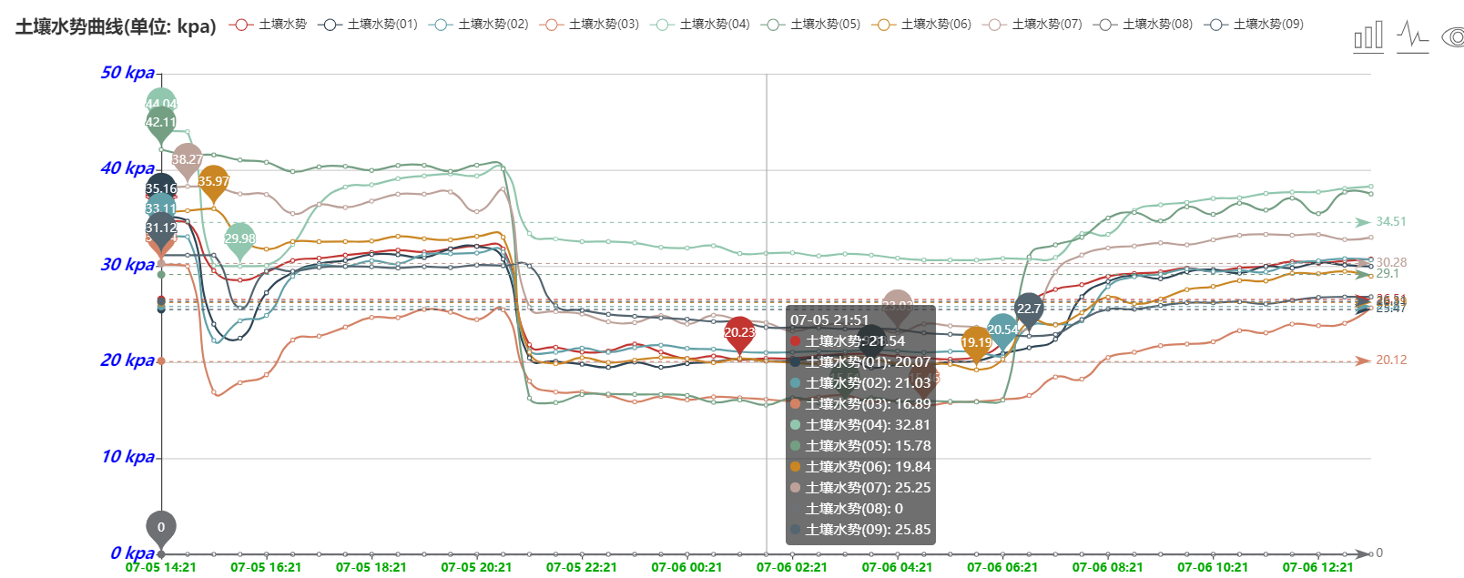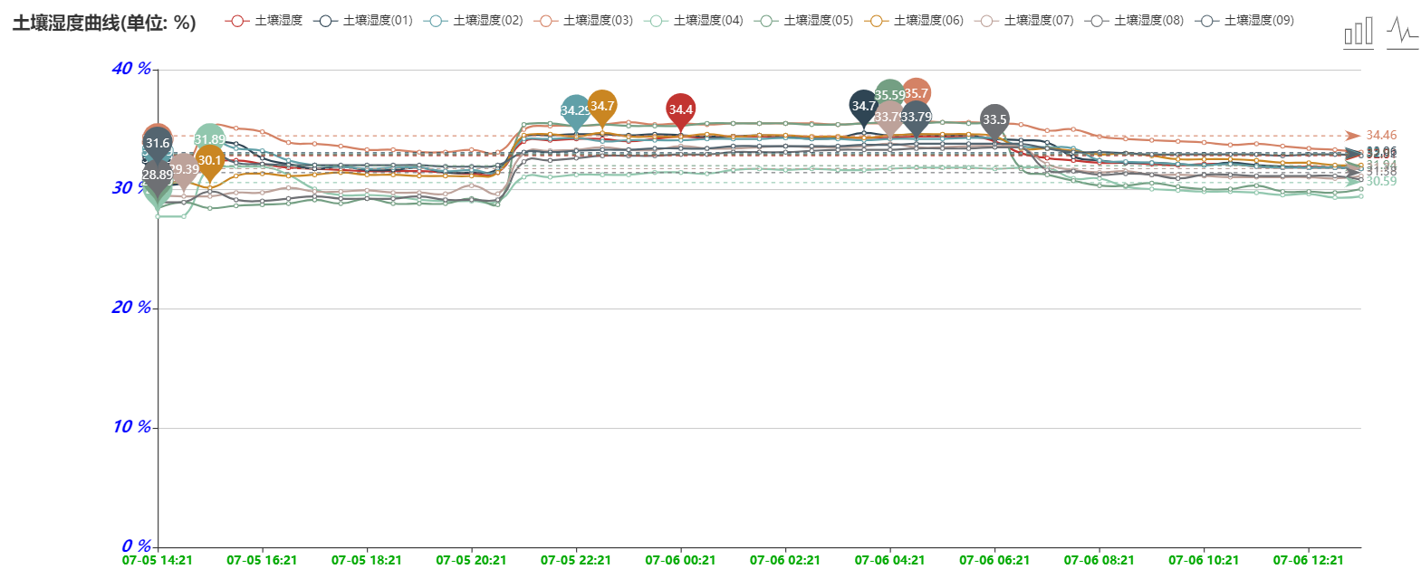 7、用戶可以隨時通過手機(jī)和計算機(jī)遠(yuǎn)程查看、下載數(shù)據(jù)。軟件可以查看最高值、最低值、平均值。用戶可根據(jù)土壤水分和電導(dǎo)率、氮磷鉀養(yǎng)分的數(shù)據(jù)變化來分析土壤各個參數(shù)之間的關(guān)聯(lián)性和相互影響。
