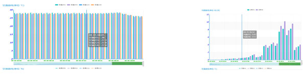D、通過(guò)曲線走勢(shì)或立柱式統(tǒng)計(jì),更能直觀形象的查看某一時(shí)間段內(nèi)的數(shù)據(jù)最高值、最低值和平均值。詳見(jiàn)如下: