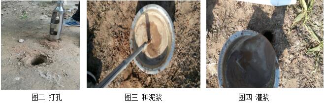 a. 將泥漿慢慢倒入孔洞,大概到孔洞1/2的位置;可根據(jù)實(shí)際情況酌情增減。