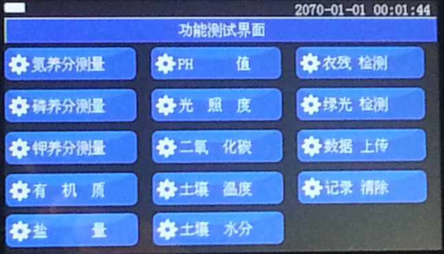 ★儀器具有對光照度,二氧化碳,GPS定位功能的升級檢測功能,屏幕如實顯示各升級功能觸摸按鍵,如用戶需要升級可將儀器退回廠家,由廠家負(fù)責(zé)升級(費用另算)。